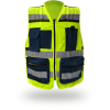 - Cuenta con bandas textiles altamente reflejantes color gris en hombros espalda y axila, que hacen que el usuario sea visible de día, de noche e incluso en situaciones de poca luz.
